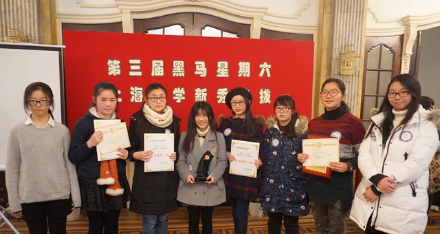 2016年2月2日下午,第三届黑马星期六·上海文学新秀选拔活动颁奖典礼在上海作协大厅召开,经过六轮命题写作环节之后,来自上海大学附属中学的高二女生乔雯婷获得了总冠军称号。 (图为本届黑马选拔赛六强与上届选手合影) 本届黑......
