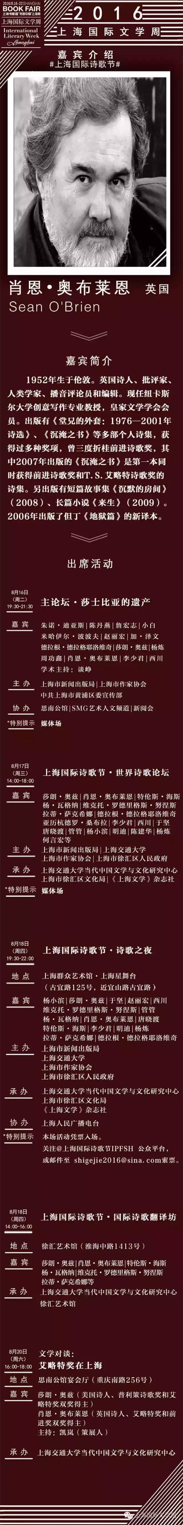 【人物】2016上海国际文学周嘉宾名录之肖恩·奥布莱恩