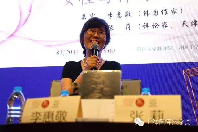 8月20日下午一点,上海国际文学周特邀嘉宾,韩国作家李惠敬来到思南文学之家,与中国评论家、天津师范大学教授张莉就“韩国VS中国:女性写作与女性生活”的主题展开中韩之间的文学对谈。