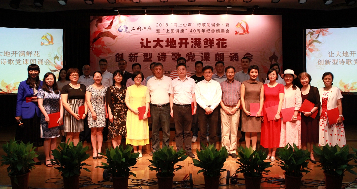2018年7月1日,“让大地开满鲜花”创新型诗歌党课暨“海上心声夏季朗诵会”在上海图书馆隆重举行。本次朗诵会由上海市作家协会、上海图书馆共同举办。出席本次朗诵会的领导和嘉宾有:上海市作家协会党组副书记马文运、上海市作家协会党组成员、副主席孙甘露、上海市图书馆副馆长何毅、中华诗词学会顾问褚水敖、上海市朗诵协会会长陆澄等。现场出席活动的还有上海市作家协会、上海图书馆的党员同志和部分党员作家以及上海朗诵协会“玫瑰心声”女诗人朗诵队的部分党员诗人。