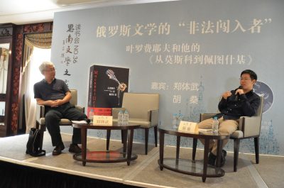 10月4日下午,上海思南公馆的文学之家里,一场关于俄罗斯后现代作家叶罗费耶夫与他的代表作《从莫斯科到佩图什基》(漓江出版社2014年8月版)的沙龙,吸引了来自社会各界的近百位读者。上海外国语大学的俄罗斯文学专家郑体武,诗人、新锐批评家胡桑,应邀与大家分享了这位俄罗斯文学的“非法闯入者”,跟随主人公踏上从莫斯科到佩图什基的列车,展开一场俄罗斯的“异样的文学”之旅。