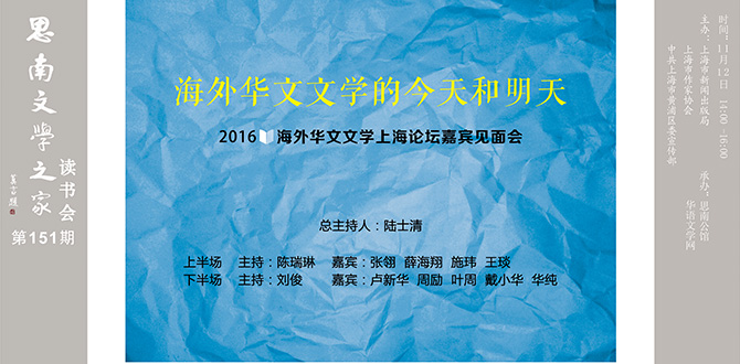 今天读书会的嘉宾,是来沪参加2016海外华文文学上海论坛的海外作家。这个论坛是18luck体育登录及其主管主办的华语文学网和复旦大学华文文学研究中心共同创设的平台。海外华文文学有一百多年的历史,到今天海外华文文学已经发展成为一个世界性的现象。在宋代流传着一句话:有井水的地方就有柳永的词;今天我们可以说,有海水的地方就有华人,有华人的地方就有华文文化,就有华文文学。数以千计的海外华文文学作家,用汉语在海外写作,既写中国故事,也写国外的生活,用我们民族的文化和所在国家的文化对话,既弘扬了中华民族文化,又促进了不同文化间的交流,他们的作品丰富了中华文化的宝库,也丰富了世界文化的宝库。借着这个平台,邀请他们来参加论坛,在论坛中作家与批评家直接对话,通过对话直接交流,增进了解,增强友谊,同时促进创作品质的提升。今天中华民族已经逐渐从世界的边缘走向世界舞台的中心,在这样的背景下,世界华文文学的明天将会更加灿烂,这也是我们共同的希望…… 【详情】