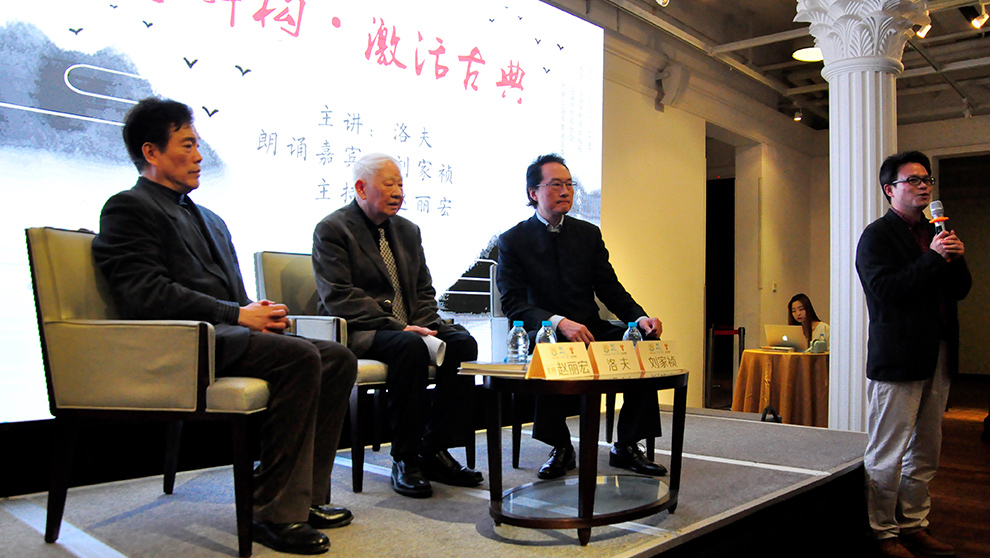 “正是由于将唐诗从一种语言翻译为另一种语言相对困难,才有了唐诗需要解构这一说。”而“解构”这一概念,洛夫向现场读者解释说,它始于后现代艺术,在后现代的思潮中,有人认为所有的文化体系都可以被解构。文化符号之间既有联系,它们本身又可分解裂变,从而使我们对文化符号的理解发生偏差,甚至对其价值产生怀疑。虽然解构不可避免地有其消极影响,但从积极面看,它是人类文化演进的必然过程,就文学的演进史而言,这是传承与创新的意义所在。
