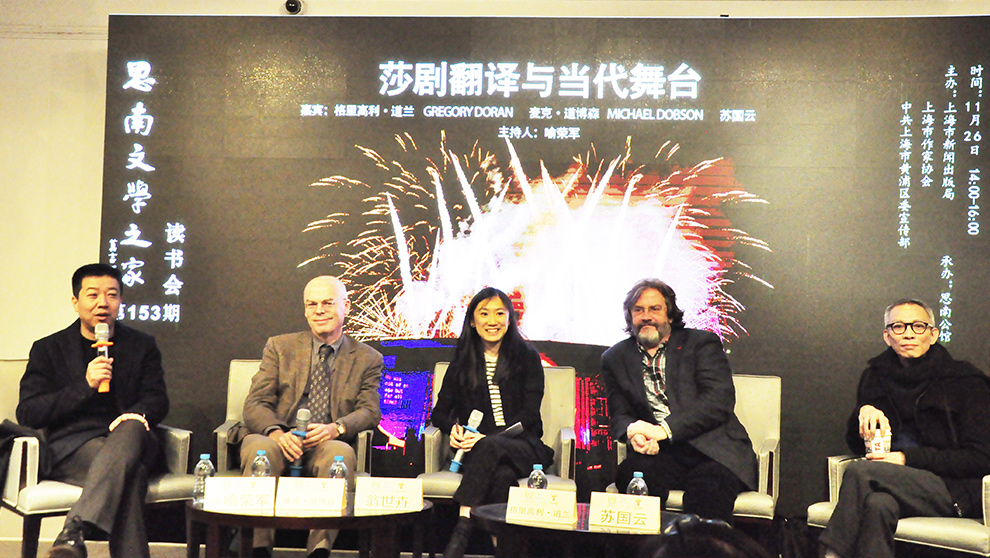 苏国云谈到在翻译《亨利五世》时,自己主要从戏剧角度出发,而非文学角度。他以人物为核心,为广大的中国观众去呈现莎士比亚如何写历史剧的。塑造人物,不光是看眼前的英国君王如何,也可以联系到如何变为一个君王,如何带领一个国家。他心里想什么?害怕什么?这些元素在整个剧本中皆可通过现代的处理呈现。“这一次翻译和当代的处理,是一个真正非常微妙的结合。”苏国云总结道。