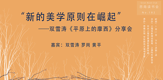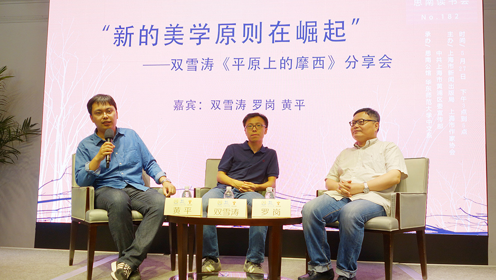 5月27日下午三点,80后青年作家双雪涛携中短篇小说集《平原上的摩西》做客思南文学之家,华东师范大学教授罗岗、黄平围绕此作与作家展开对谈,从文学的角度讨论小说创作中所展现的“新的美学原则”。