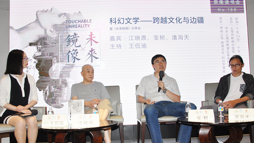 6月24日下午,第188期思南读书会“跨越文化与边疆暨《未来镜像》的分享会”邀请了上海交通大学教授、科学史与科学文化研究院院长江晓原,科幻作家宝树,竺灿文化联合创始人、科幻作家潘海天畅谈科幻文学在知识边界、文化边界以及国家边界上的跨越,与主持人王侃瑜共同走进科幻的文学世界。