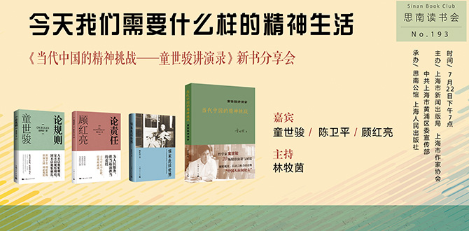 7月22日下午七时,华东师范大学党委书记童世骏与华东师范大学哲学系教授陈卫平、顾红亮做客第193期思南读书会,上海广播电视台新闻中心播音指导林牧茵担任主持。四位嘉宾从童世骏新书《当代中国的精神挑战--童世骏讲演录》谈起,探讨当代中国精神生活的特点和发展方向 ……【详情】