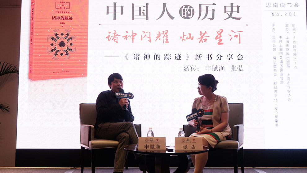 张弘介绍到申赋渔有着独特的生活背景:曾因记者的工作需要,长期旅居巴黎。对此,她有所疑问,眼前是现代西方之景的申赋渔,为何会投身于中国古代文化的书写。申赋渔回忆当年因为工作的原因接触到许多华人,并与他们有进一步的交流。在沟通中,他发现华人们普遍有着迫切寻根的焦虑。因为他们的孩子大多出生在国外,从小精通外语也掌握汉语,但唯独对中国文化的了解严重匮乏。这些华人极其渴望孩子们能有健全的知识储备,同时也希望能弥补自身的文化缺失。
