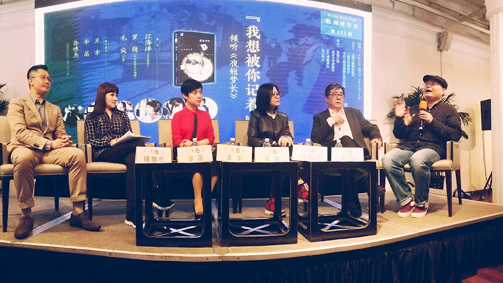 周六思南读书会,毛尖以主角身份带着新书《夜短梦长:毛尖看电影》登台,助阵者是导演江海洋和学者罗岗,加上侧耳团队成员、SMG新闻主播王幸、李菡、徐惟杰为老电影配音演绎,登时让现场成了一席语言的盛宴。“还想听你多讲一点。”台上你来我往近两个小时后,留下15分钟时间互动,第一个“抢”到话筒的读者没有提问,只是央求毛尖“再多讲几句,还没听够”。