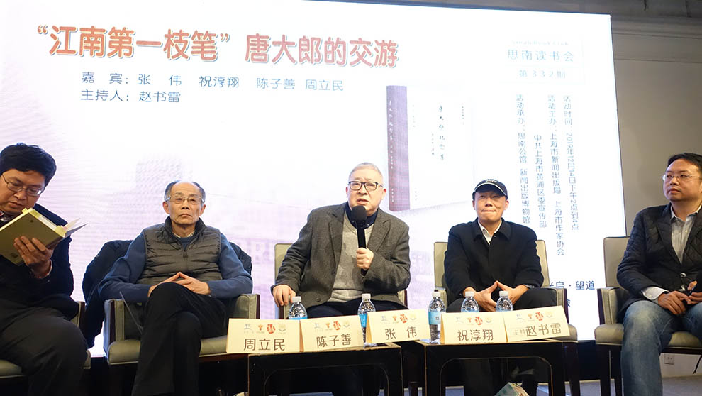 祝淳翔围绕“唐大郎的书画缘”详细介绍了他与书画名家邓散木、白蕉、唐云等人的交往。唐大郎曾请邓散木刻印,邓散木没有马上给他,他写了一首打油诗催促,一段时间后完成了。1963年邓散木去世,唐大郎在香港《大公报》上写了一篇《老铁杂忆》,全面回顾了两人的交谊,文章不长,笔调诙谐。唐大郎与白蕉相识于1938年8月的杯水书画展,他说看了白蕉的书法后“惭愧得要死”,以后“不该再雅”,因为白蕉比他水平高多了。同样相识于此次书画展的书法家唐云为唐大郎题写墓碑,大书“诗人唐大郎云旌之墓”……【详情】