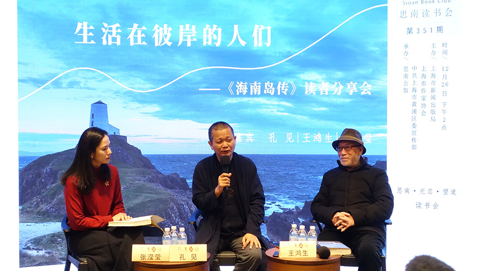张滢莹提出,当生活在岛屿上的人走到海边,会不会产生与大陆离间的感觉,从而对人的性格塑造有一定影响?孔见回应,生活在陆地与生活在海岛是两种截然不同的心理感受。“大陆上的人脚下有绵延不断的辽阔大地,背靠崇山峻岭就有安稳、有势可依的感受。但是在海南岛,不愿走回头路的人将无路可走。岛上条条大路通向深海,不回头就会成为一个落汤鸡,在海南只能走回头路。”