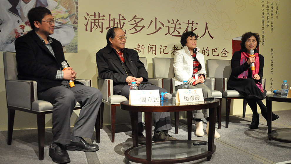 本次思南读书会的主题源自巴金故居编选的《满城多少送花人——新闻记者眼中的巴金》一书,而这本书的书名又源自新华社高级记者赵兰英的一篇报道,她清楚地记得,1992年巴老生日那天,她走了好几家花店都说没花,后来从衡山路走到富民路,终于在花店里买到一束花。“店主说,今天好多人来买花,好像有个人生日。我问是谁?他说是巴金!”